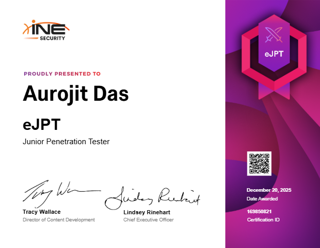 Successfully completed the eLearnSecurity Junior Penetration Tester certification